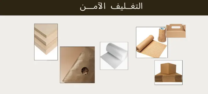 تعتمد تغليف على مواد عالية الجودة وتقنيات متقدمة لضمان سلامة الشحنات أثناء النقل المحلي والدولي، مع التزام تام بالمعايير الدولية للتعبئة والتغليف.